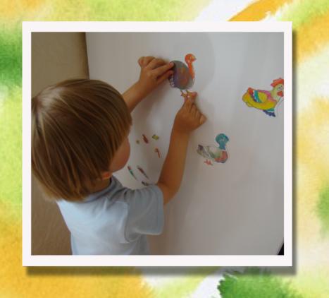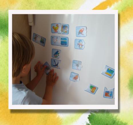 Пазлы всю неделю весели на холодильнике и ребенок в любое время, когда хотел с ними играл.