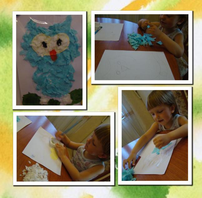 - Сова (шаблон, клей ПВА, туалетная бумага двух цветов, краски)