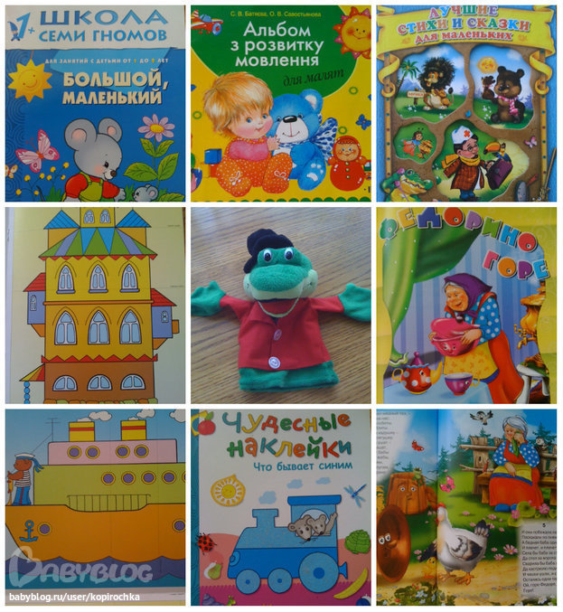 Игрушка, которая заставляет Дашу хохотать и с которой она ложиться спать Крокодил Гена, его одевают на руку. И Чудесные наклейки, повторим в полете цвета.