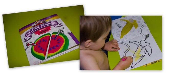 Собирали контурный пазл, впервые...результат мне понравился, Тёмочка сразу понял смысл и многим фруктам нашёл свой контур.
