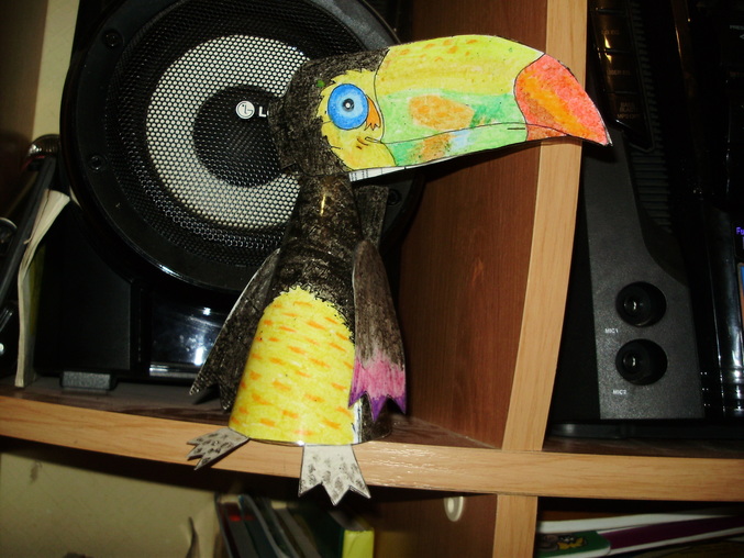 Нарисовала вечером туканчика и подготовила два листика цветной бумаги.