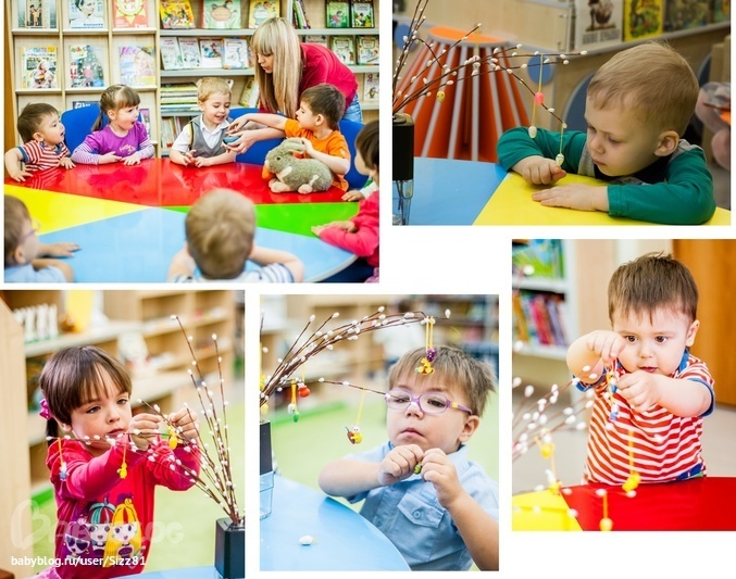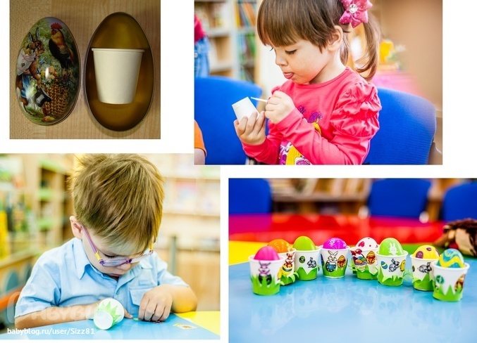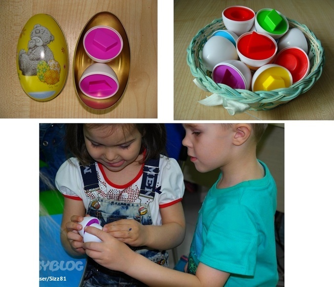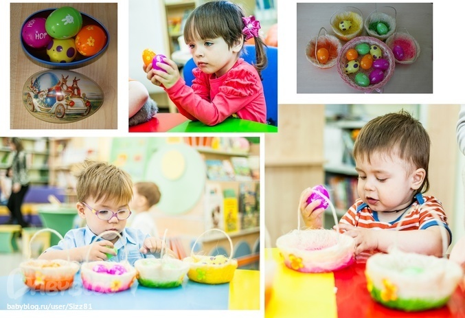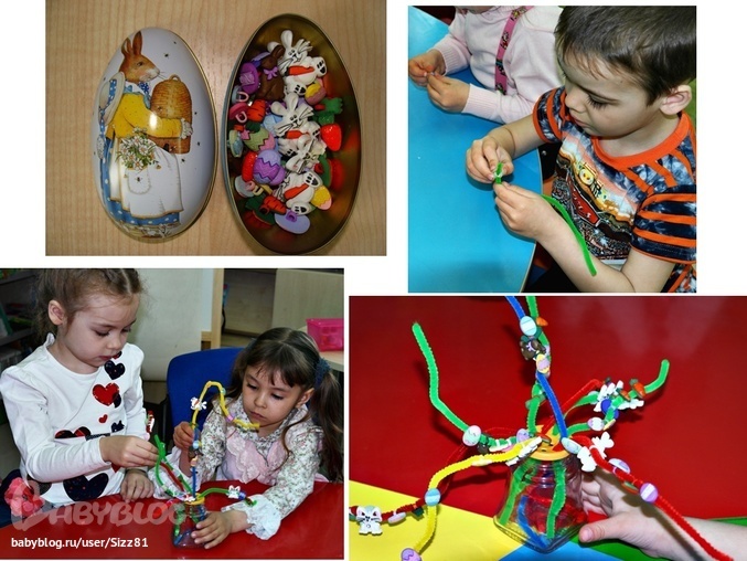 В первом яичке лежали пуговки и маленькие яички, нужно было сделать букет и украсить вербу: