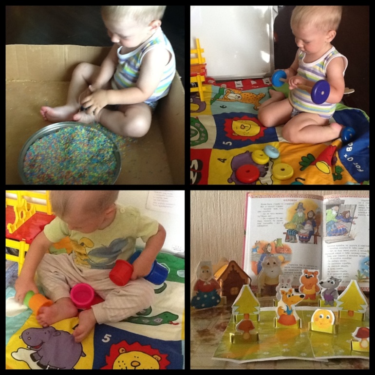 На пятый день меня просто прорвало идеями так как вокруг столько всего круглого оказывается! Круг есть во всех наших сортерах, круг это солнышко, цветочек, ягоды, фрукты овощи на плакатах, пирамидка - тоже круг, мячик, колеса на машинах, банки тарелки стаканчики, ну и тд. Мы все это смотрели с большим удовольствием! Ну и занимались, правда совсем чуть-чуть...