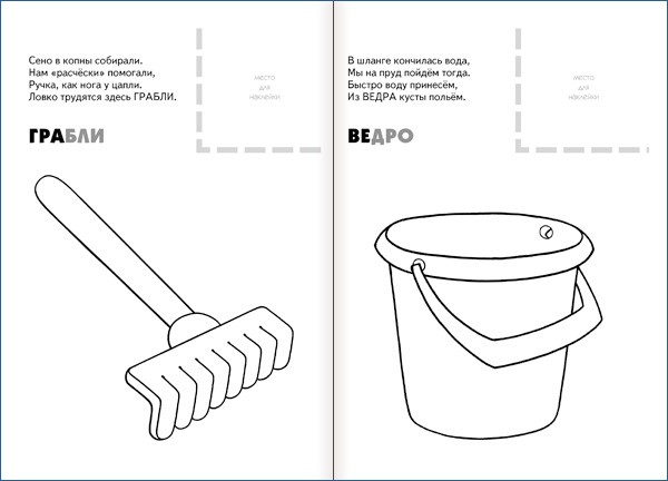 Из творчества: делали коллажи из вырезанных мной картинок с инструментами, разукрашивали ведра и прочее из тематических разукрашек.