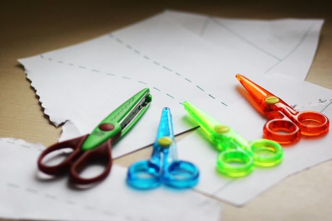 Инструмент ножницы: резали бумагу по прямым линиям, заранее нарисовала сама всякие формы. Ножницы у нас были прямые, волнистые, зигзагообразные.