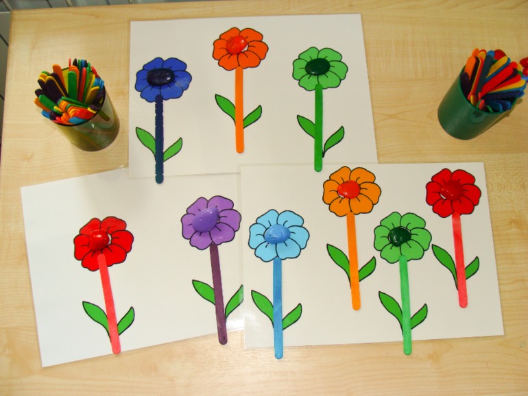 Задание 2.Подобрать цветочкам стебельки (палочки) и сердцевинки