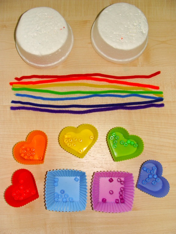 Задание 6 . «Радуга». Одевали на синельную проволоку мелкие бусины.