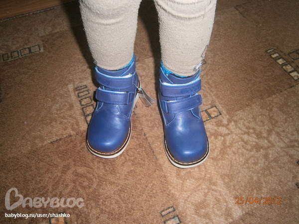 Вот наши ботиночки. Стопа где-то 15,8 см, ботинки взяли 26 размера (по размерной сетке 17,3см, что соответствует действительности). Как видно, одеваются на шерстяной носок. Качество отличное! Цвет очень яркий! Сына как надел, так снимать не захотел. Весь вечер в них ходил, а на ночь поставил возле кровати. Ходит в них второй день в садик - видно, что очень удобно. Спасибо огромное!