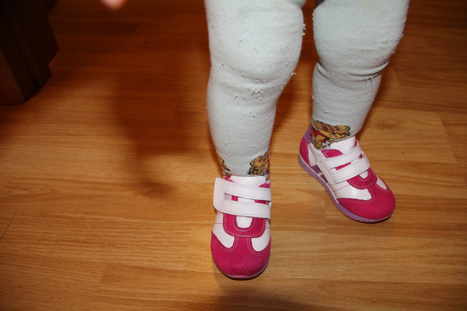 Размер брала 22. Девочки, если кому-то надо, то я пристраиваю такие же розовые туфельки, только 23 размер. Они нам оказались очень большие. Фото у меня в дневнике.