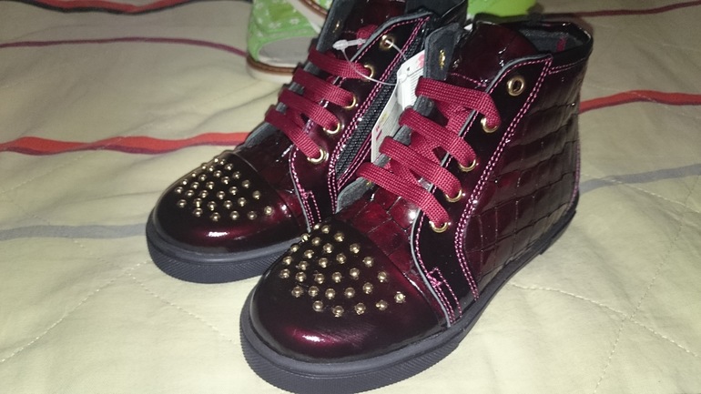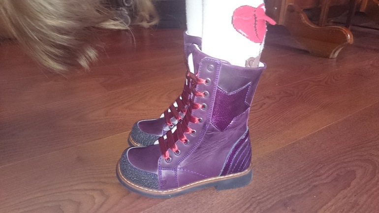 Высокие ботиночки .Супер!!! цвет я бы сказала бордо, хотя шли как фиолет))) нам оочень понравились, сидят на ножке супер!!
