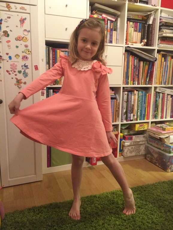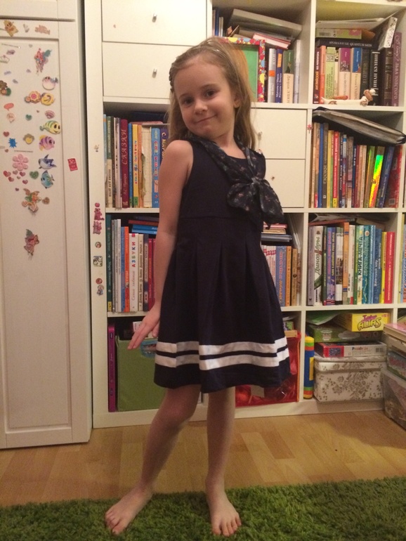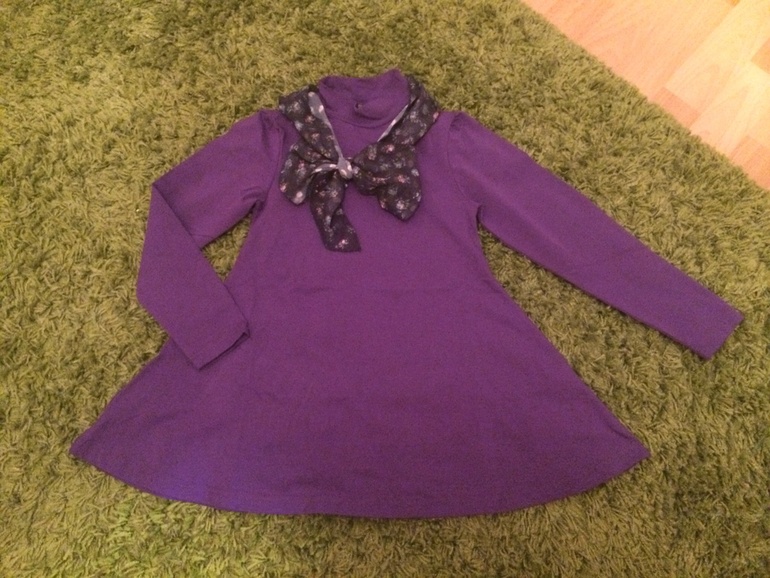Единственный минус на фиолетовом платье узкая горловина, голова еле пролезла. Повторно надевать его дочка отказалась.