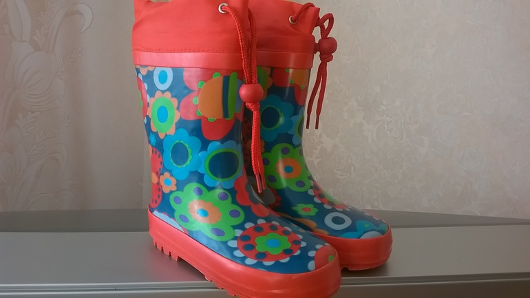 стелька 17 см, высота сапожек 21 см, учитывая верх из ткани, высота только резиновой части 16.5 см