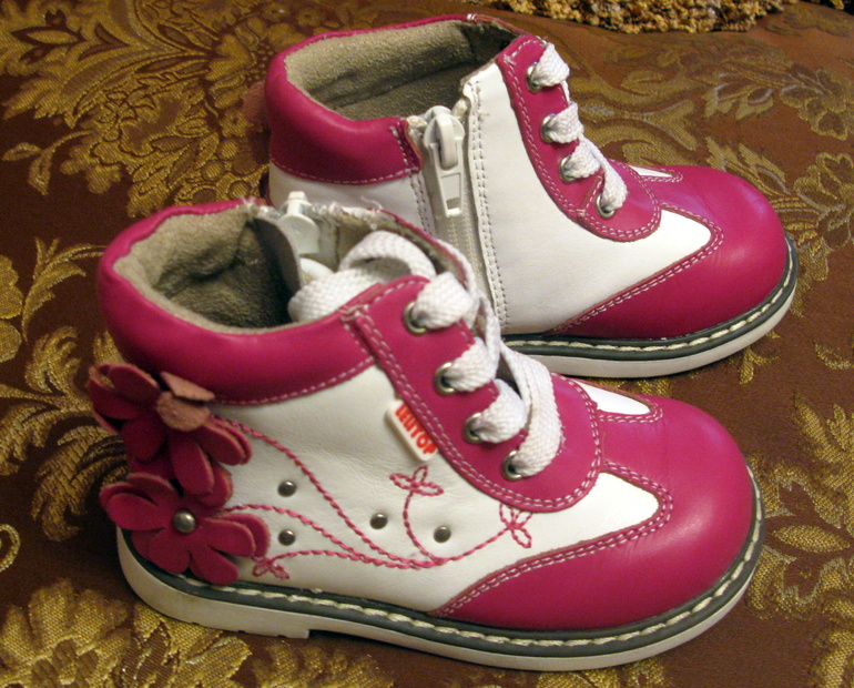Ботинки одели один раз, нам оказались узковаты.Ребенок отказался их одевать. Есть почти незаметная небольшая царапина на мыске у левого ботинка. На внешний вид абсолютно не влияет. Материал верха и стельки-кожа. Длина по стельке 15,3 см. Цена 1500 руб.Эластичная амортизирующая подошва позволяет снизить нагрузку стопы ребенка во время ходьбы.