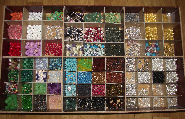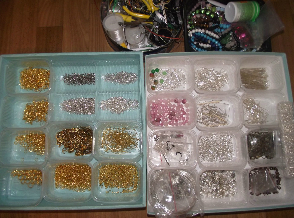 А пока покажу Лилины запасы камней, фурнитуры и прочих красивостей, из которых мы будем делать серьги:)