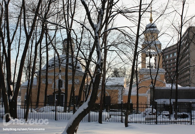 А это церковь села Козьмодемьянское, находящаяся за оградой усадьбы. Также от усадьбы сохранилась старинная стена с шарами, выполненная в том же архитектурном стиле