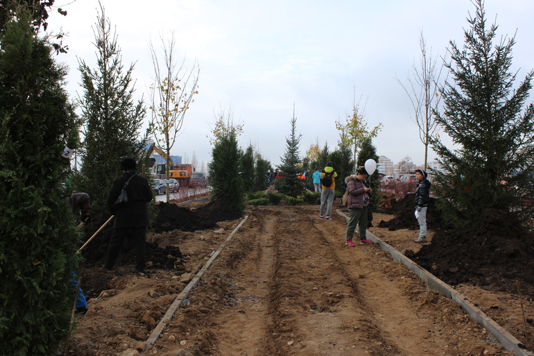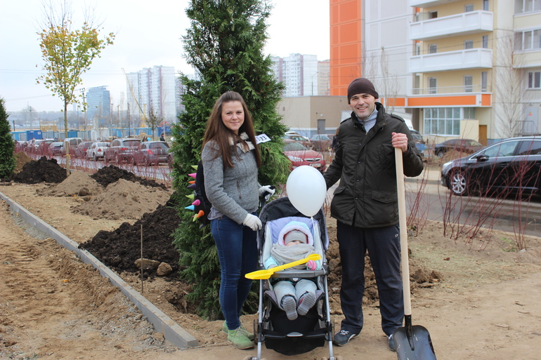 Получили номерок. Пошли искать наше дерево, оказалось немного не то, которое бронировали. Должны были сажать рядом с друзьями, а вышло по разные стороны тропинки. Но мы всё-равно были рады)))