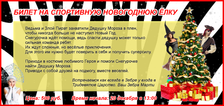 Новогодняя Елка в Зебре - Химки!!! + розыгрыш билета:)
