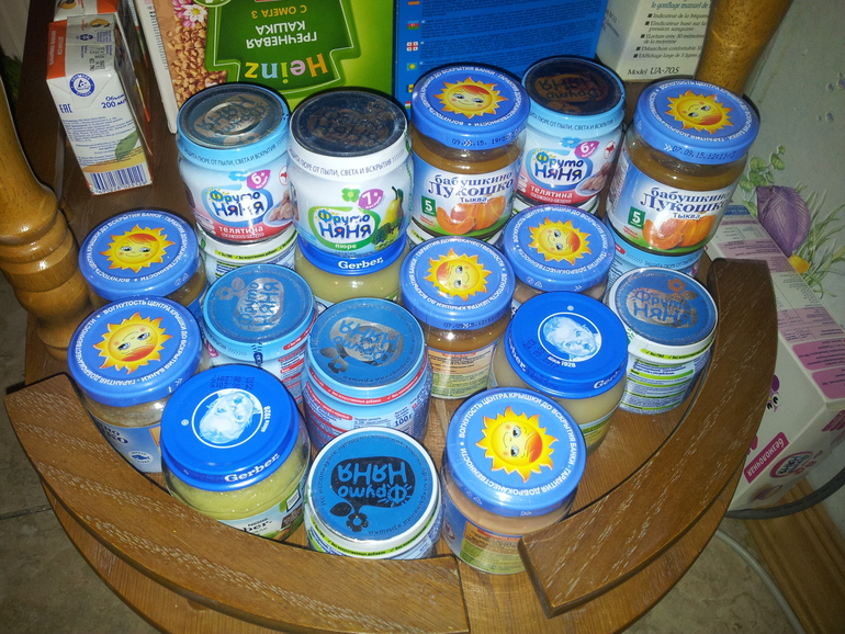 Отказалась Саша от банок. Только взрослую еду ей подавай. С переменным успехом ест только "сам с усами".