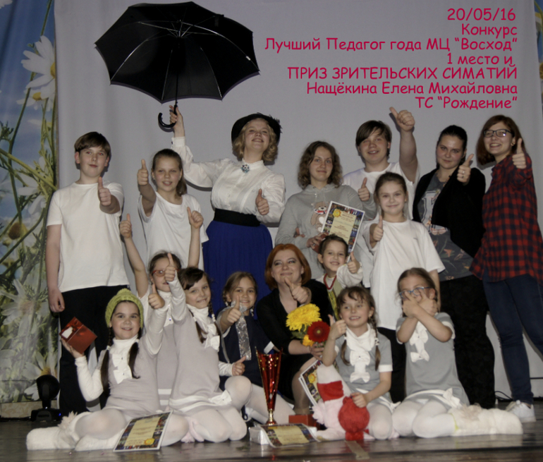 Состоялся конкурс на Лучшего Педагога Года МЦ "Восход",г.Химки. Победила наша театральная студия, с преподавателем, художественным руководителем Нащекиной Еленой Михайловной.