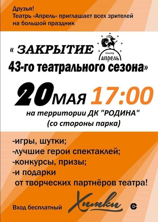 Химки день за днёмДевочки, завтра 20го в 17 у ДК Родина со стороны парка будет закрытие сезона Апрель. Пишу, что знаю. Узнала из первых рук ))).