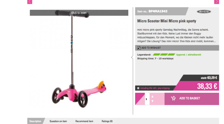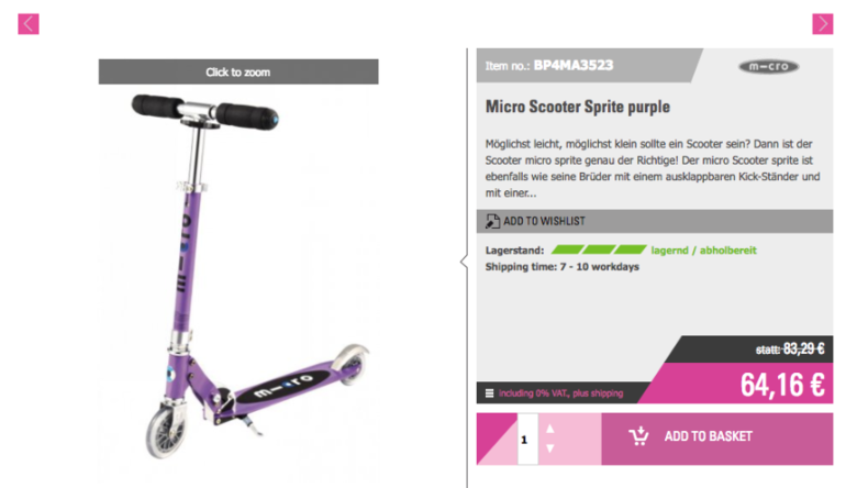 Мне нужен Micro scooter sprite, в Москве он 7200. На сайте 64 евро (примерно 4500).
