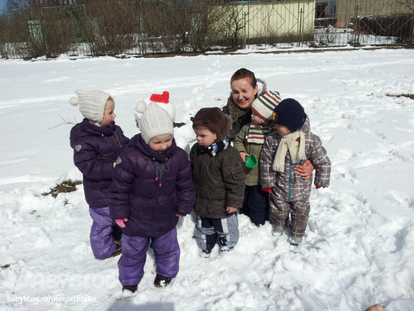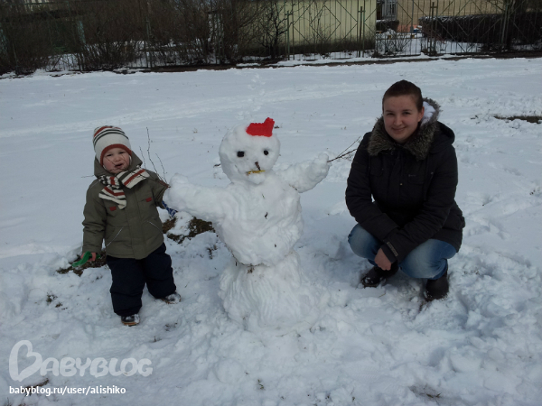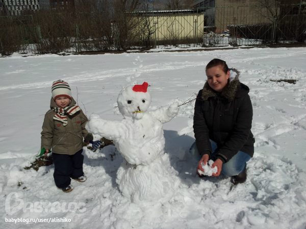 мой один))) нам наш папа снеговик построил , так детки все сбежались, снеговик простоял минуты две от силы) и все))) справились)))