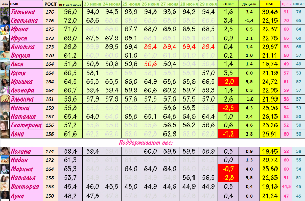 Привет! Я вернулась! Вес...67,200! Ела мало, что попадет, пила не много... как попало, но старалась не хавать! Вроде не плохо) Но даже 2 кг не скинула за месяц... а хотела 3... это плохо(