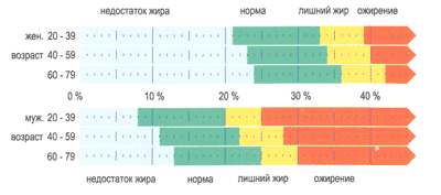 Полученная сумма достаточно точно отражает процентное содержание жира в организме. Теперь, с цифрами на руках, можно заглянуть в таблицу: