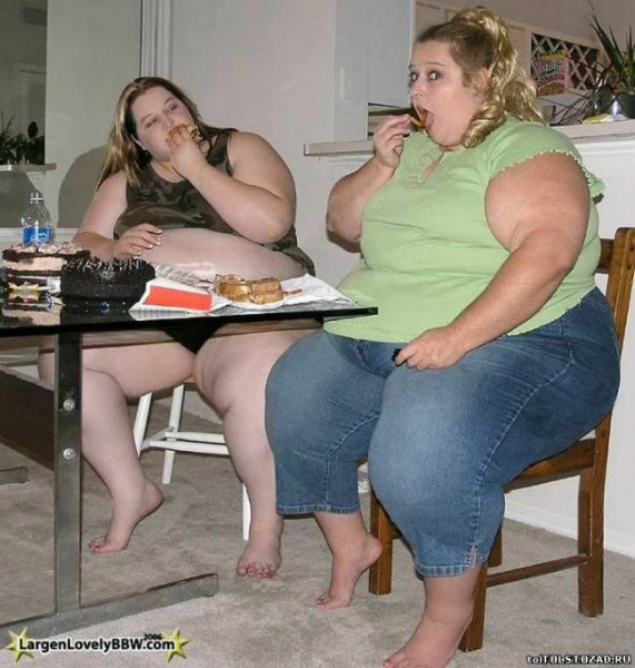 Однажды я видела карикатуру, на которой была изображена женщина, метавшаяся по кухне, а различные продукты из шкафчиков, со стола, холодильника тянулись к ней с призывом "Съешь меня! Съешь меня!"