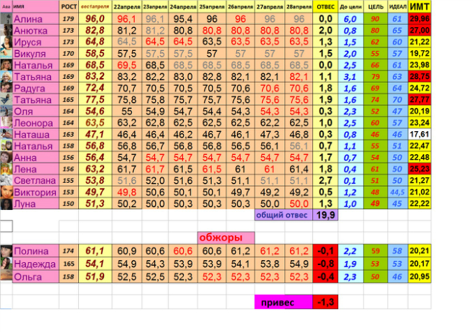 Ежедневные отчетыПриветик девченки, как прошли выходные, почему пропали многие, надеюсь сильно не обьедались - лето уже совсем скоро!!! сегодня разгружаемся!!!