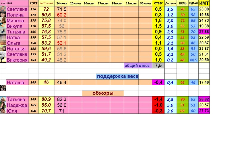 Ежедневные отчетыПриветик всем, сегодня 25-е число, девченки смотрим на поставленные цели и БЕЖИМ к ним!!!!! времени осталось совсем ничего...