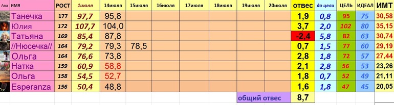 Доброе утро) в пятницу утром вес был 100... ((((Сегодня утром встала и 96.7Кушала вчера ...блин не помню... сегодня запишу что съем)