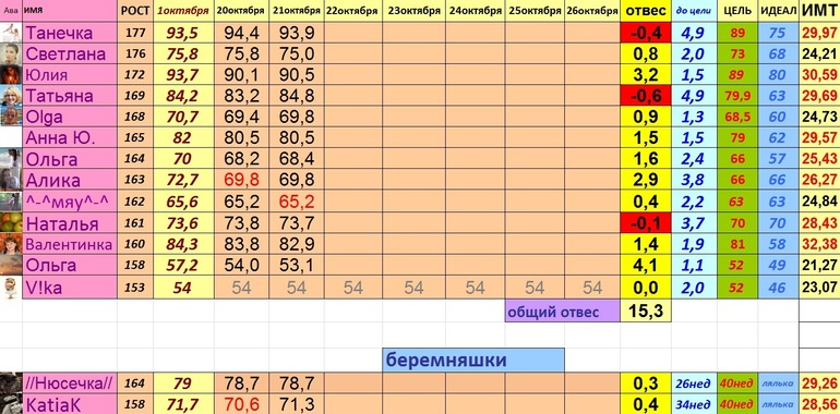 Отвес рядом с весом пиши. Так девочкам проще будет оценить результат:-)меню не очень. Но с отвесом