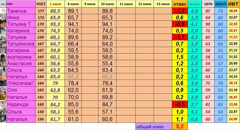 Всем приветик!!! Вес мой на сегодня 55,8(-1,3)