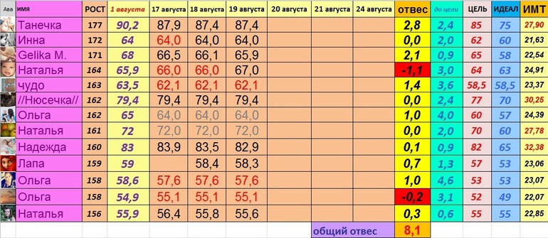 Ежедневные отчетыДоброе утро, девочки!!! 2/3 августа позади.. а наших результатов не видно.... Девочки, берем себя в руки, вспоминаем про поставленную цель в августе и бежим к финишной прямой!!!!