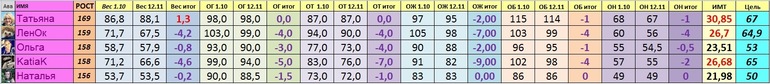 А я пишу сегодня, мерялась вчера Ог 95, от 75(-0.1), ож 86 (-0.1), об 96 (-0,1), он 54 (-0,1). Спорт аэробика и аквааэробика. Хочу начать бегать опять, так как блин ноги ужасные, кожа подвисает :(