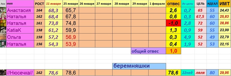 У меня разгруз не сложился вчера.Нечем было.Сегодня разгруз планирую,правда ночь не спала с мелким, на еду не тянет...Сплю на ходу.Вес 67.8,на месте. Вчерашнее меню:з-гречка с молоком,о-творог,у-куриные котлеты,п- банан,яблоко,кефир. Нюсечка,спасибо,что я уже попала в табличку))))