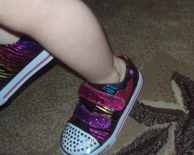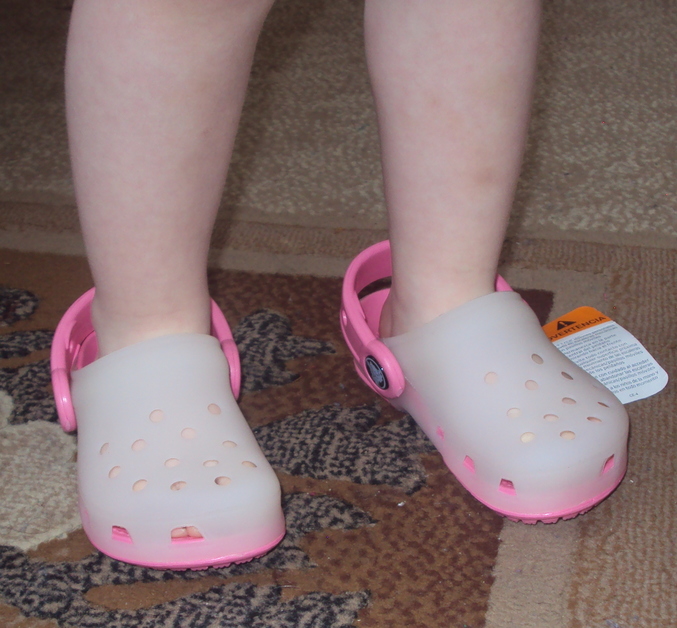 Получили мы нашу многострадальную посылку...Пламенный привет работникам почты...В скечерсах моя мадам утонула,обязательно закажу поменьше на 2 размера,кроксы тоже чуть велики,но если бы взяли 4/5 ,то они нам точно были бы малы)Старшенькой моей развлекуха,вытаскивает кроксы во двор и смотри ,как они на солнце меняют цвет:)))Юлечка,спасибо огромное за закупку!!!