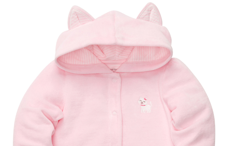 Carters Комбинезон Котенок создан из очень мягкого и нежного велюра. Приятная качественная ткань необходима для малыша. В то же время этот комбинезон от Carters очень красиво и нежно выглядит. Вашей малышке он будет очень к лицу.