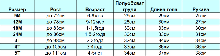Размеры: 9М, 12М, 18М, 24М,3Т, 4Т, 5Т, 6Т
