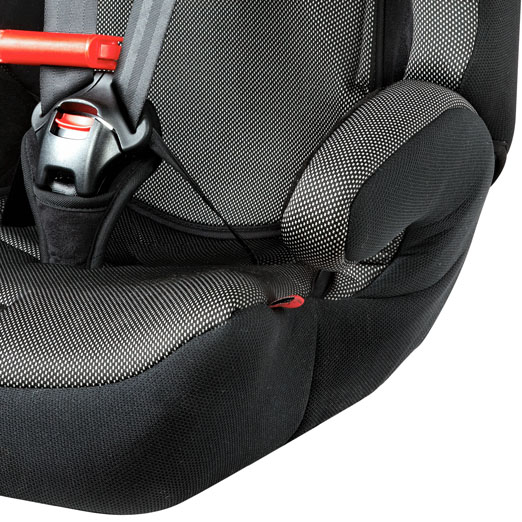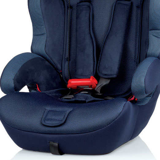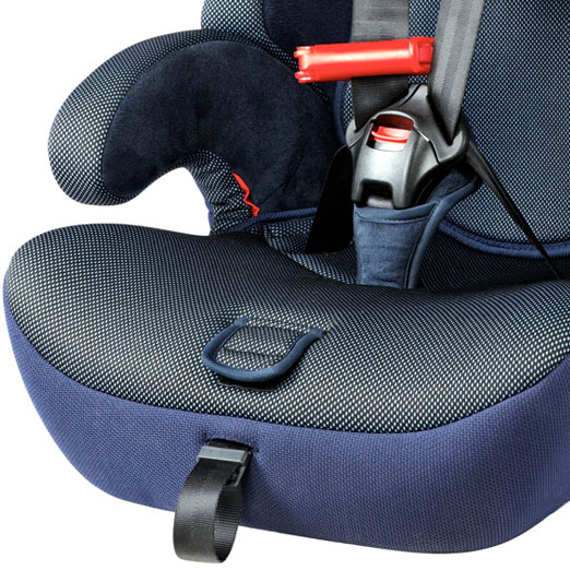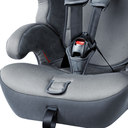Отличительными особенностями данной модели являются широкая подушка сидения, полноценные подлокотники и усиленный фиксатор для более точной регулировки штатного ремня безопасности.