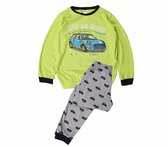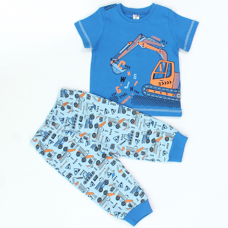 Очаровательный комплект для сна с актуальным мальчишеским принтом в виде трактора и яркой расцветкой. В комплекте реглан с длинным рукавом и брючки с эластичной тесьмой в поясе и манжетиками по низу. В этой пижамке Ваш юный богатырь будет видеть самые сладкие сны.