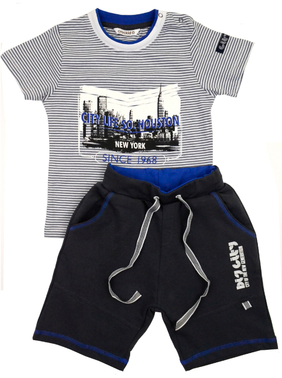 Crockid Комплект Спортсмен шорты+футболкаБесподобный комплект из шортиков и футболочки с ярким принтом для Вашего спортивного мальчика. На шортиках широкий эластичный пояс с тесьмой в нем. Отлично подойдет для занятий спортом.