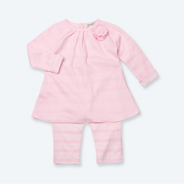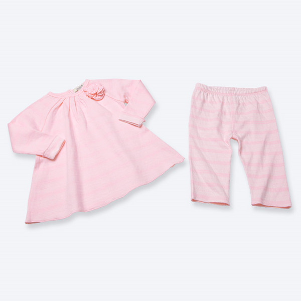 Dave&Bella Костюм Нежность Этот костюм для девочки действительно очень нежный и романтический. Использованы спокойные розовые тона. Ткань комплекта - 100% хлопок. Комплект легкий и удобный. Состоит он из кофточки трапециевидной формы и брючек в бело-розовую полоску. Кульминацией нежного девичьего образа является украшение на кофте в виде цветочка. Комплект легко одевать и снимать благодаря удобной застежке на пуговицы на кофточке сзади и эластичной талии на брючках. Идеально сочетание нежности и удобства в одежде!
