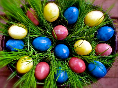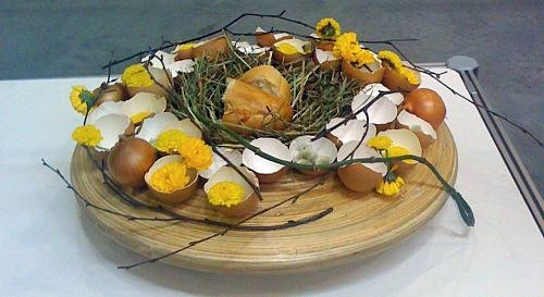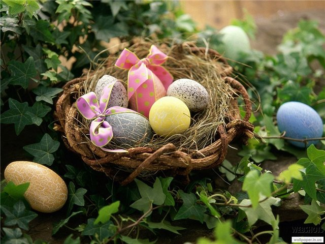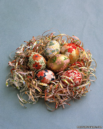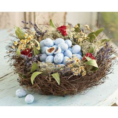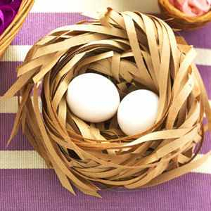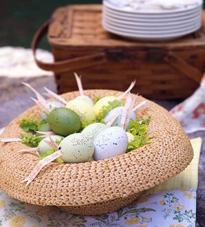 Где лучше всего найти поутру пасхальные яйца? Конечно, в гнезде! В таком виде яйца можно и на стол поставить, и преподнести в подарок.