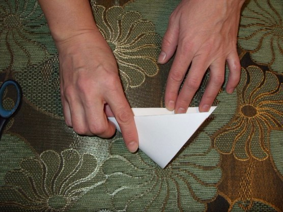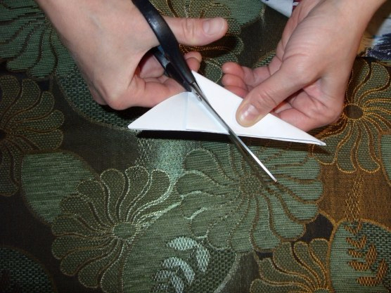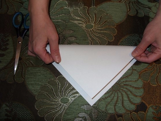 Берём ножницы и от сгиба сверху отрезаем ненужный угол.