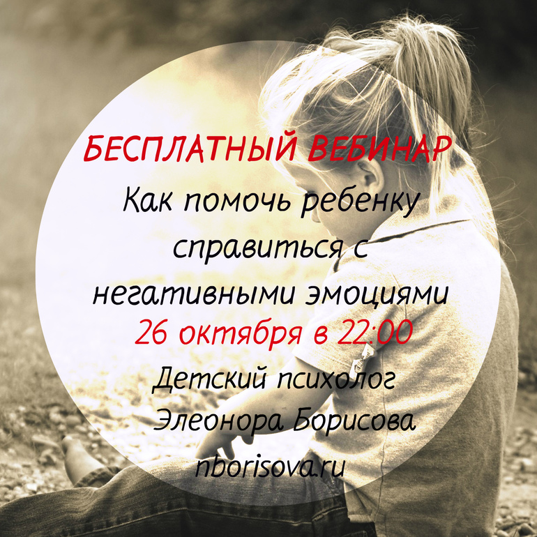 Будем ЗнакомыПриглашаю на бесплатный вебинар "Как помочь ребенку справиться с негативными эмоциями". Вебинар пройдет 26 октября в 22:00.