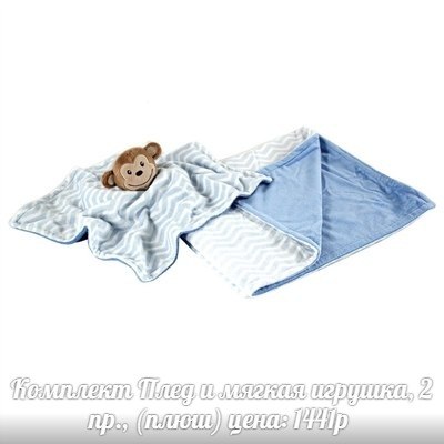 Плед с мягкой игрушкой - отличный подарок для новорождённого. В комплекте входят стандартный прямоугольный плед, а также маленький плед с мягкой игрушкой. Приятный плюшевый материал дарит комфорт и уют малышу.