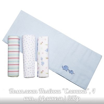 3.Комплект Пелёнки "Слоники", 4 шт., (фланель)