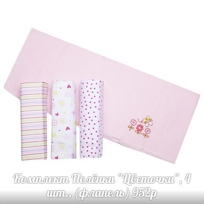 4.Комплект Пелёнки "Цветочки", 4 шт., (фланель)